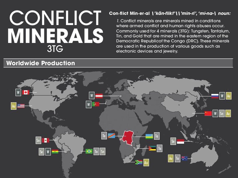 The term Conflict Minerals describes 4 elements - Tin, Tantalum, Tungsten and Gold, and is commonly referred to as 3TG.
