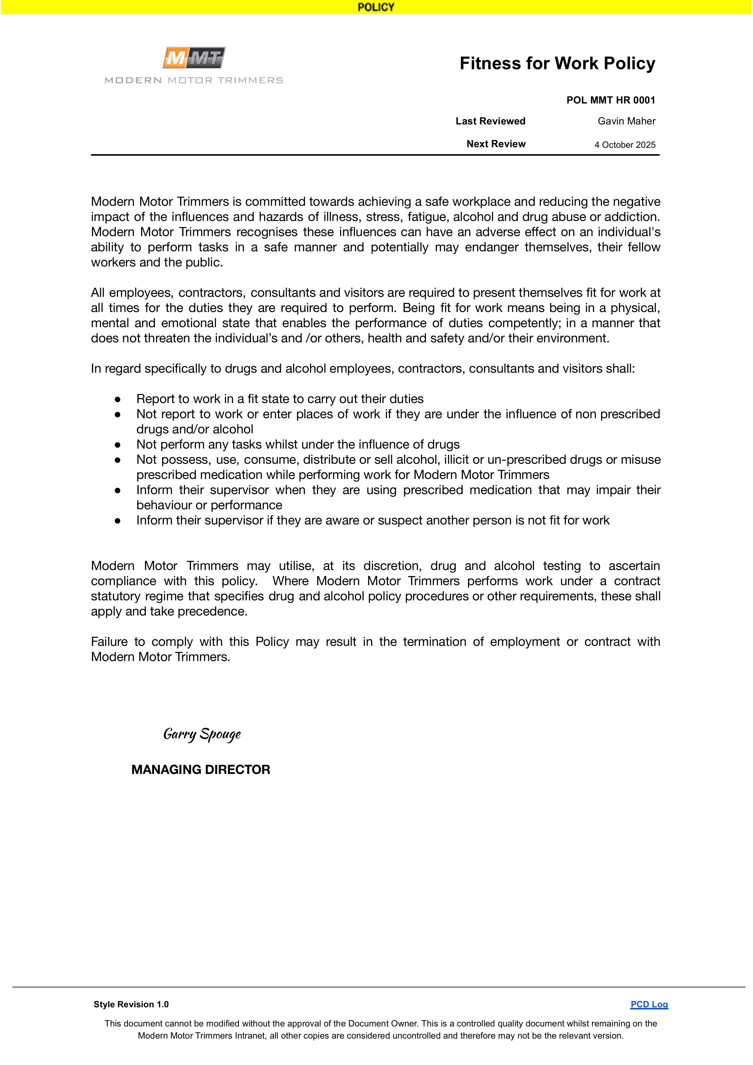 MMT Policies are our set of general guidelines or statements of purpose. These provide broad guidelines on action to be taken to achieve our business purpose.